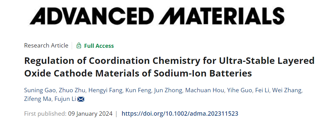 Advanced Materials:钠离子电池超稳定层状氧化物阴极材料的配位化学调控